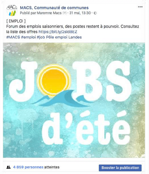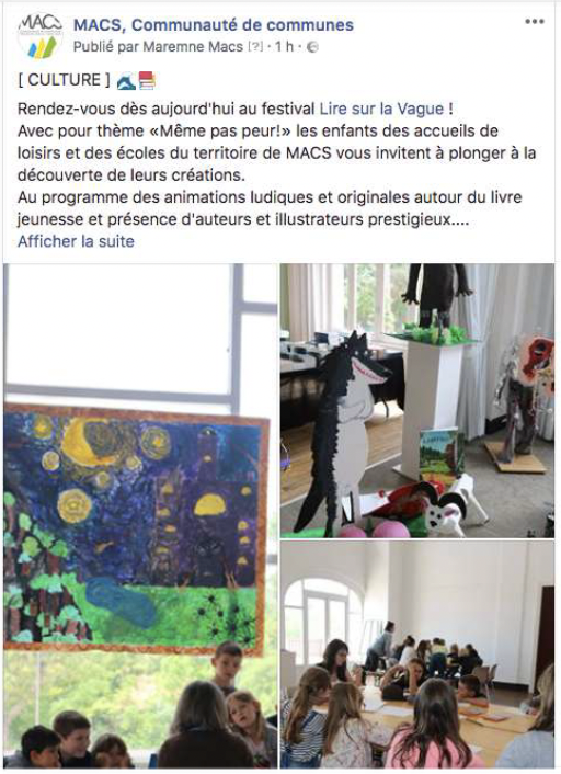 Gestion et rédaction des publications sur la page Facebook, réalisation de visuels.